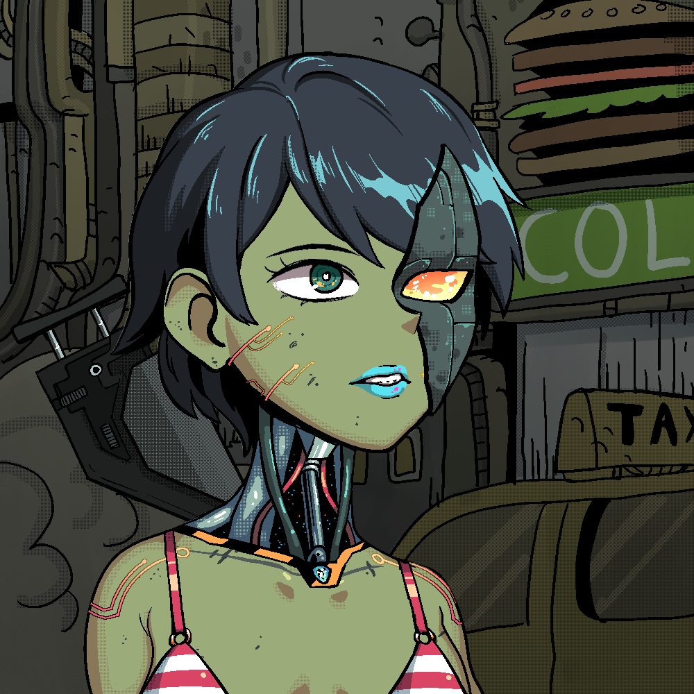 Cyber Galz is a collection of 9,999 uniquely generated female humanoids featuring customisation by changing Partz, the changeable attributes.