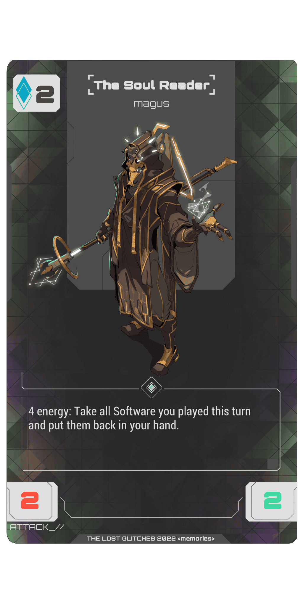 Pay 3 energy: Deinitialise target Glitch. This costs 1 less energy for every enemy Glitch initialised this turn.