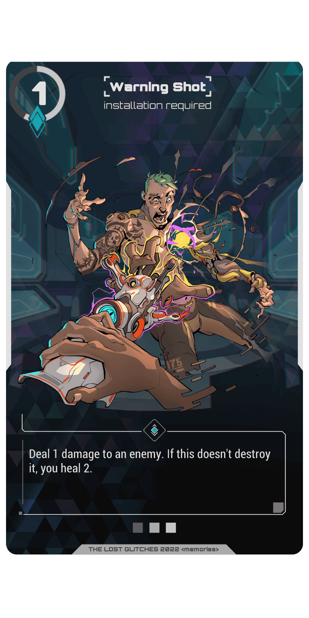 Lost Glitches is a mixture of trading card game (TCG) and role-playing game (RPG). Players choose their syndicate, assemble their deck and gain experience to improve their character's skills and equipment, and eventually conquer the virtual world of Deep Sky.
