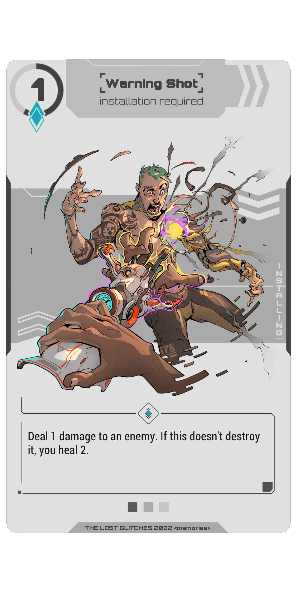 Lost Glitches is a mixture of trading card game (TCG) and role-playing game (RPG). Players choose their syndicate, assemble their deck and gain experience to improve their character's skills and equipment, and eventually conquer the virtual world of Deep Sky.