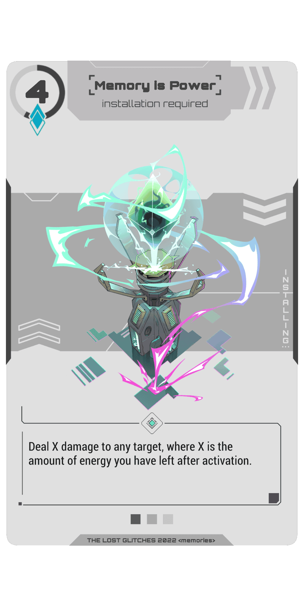 Lost Glitches is a mixture of trading card game (TCG) and role-playing game (RPG). Players choose their syndicate, assemble their deck and gain experience to improve their character's skills and equipment, and eventually conquer the virtual world of Deep Sky.