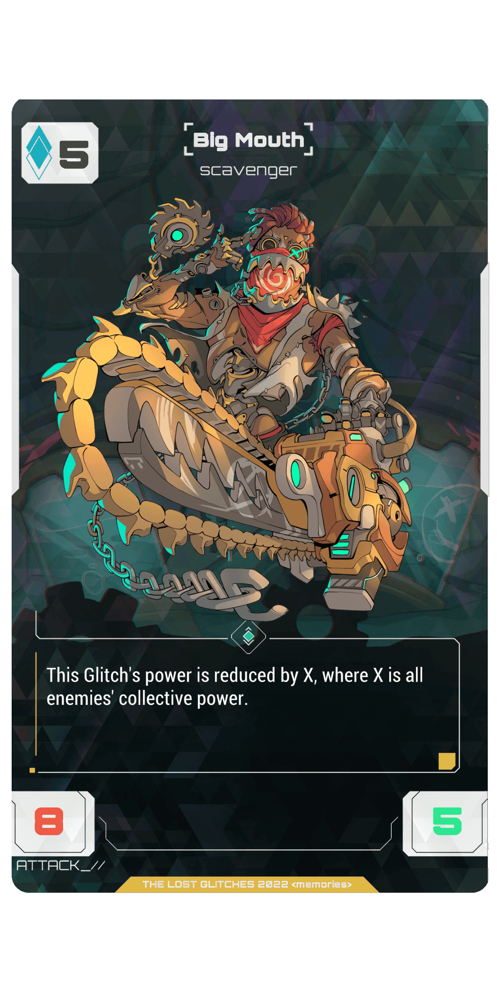 Big Mouth's power is reduced by X, where X is all enemies collective power.