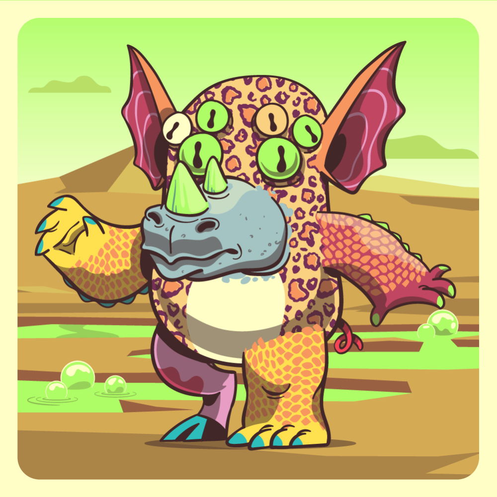 This mutant might have been a Leopard. It features fluo spider eyes, blue rhino horns, red bat ears, red crocodile arm, uranium crocodile arm, orange crocodile leg, pink cow leg and a red pig tail.