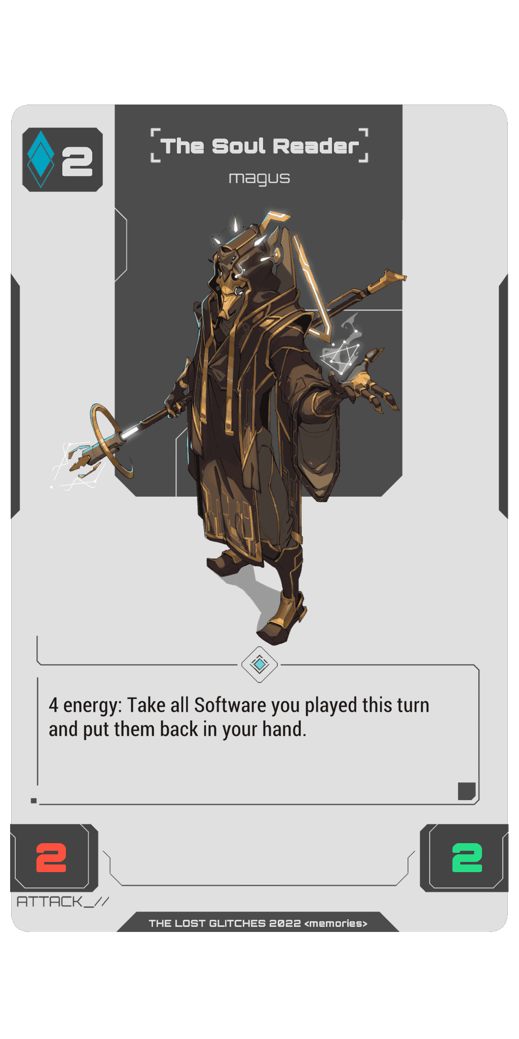 Pay 3 energy: Deinitialise target Glitch. This costs 1 less energy for every enemy Glitch initialised this turn.