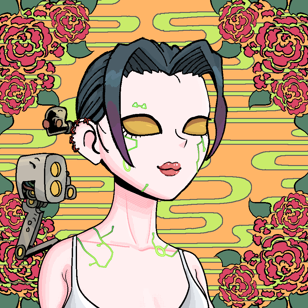 Cyber Galz is a collection of 9,999 uniquely generated female humanoids featuring customisation by changing Partz, the changeable attributes.