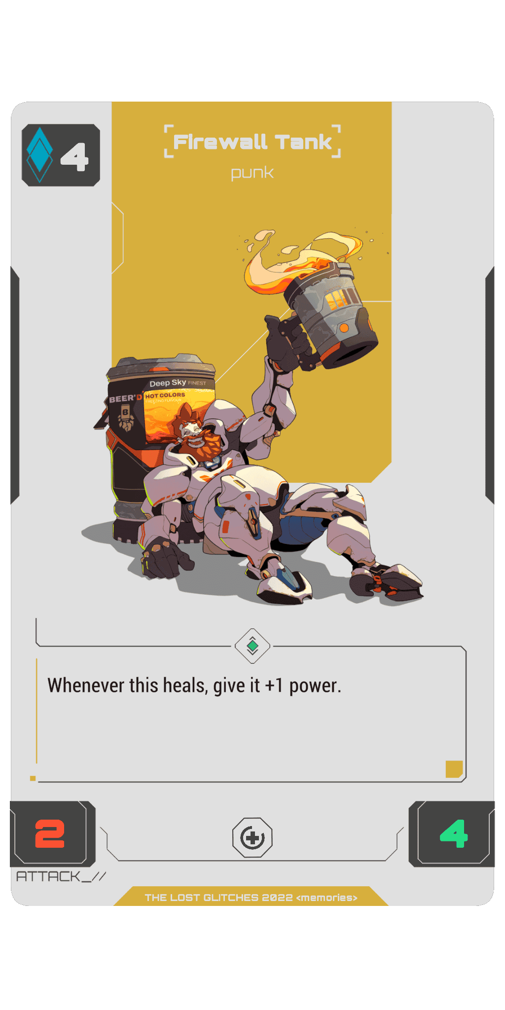 Whenever Firewall Tank heals, give Firewall Tank +2/+0.