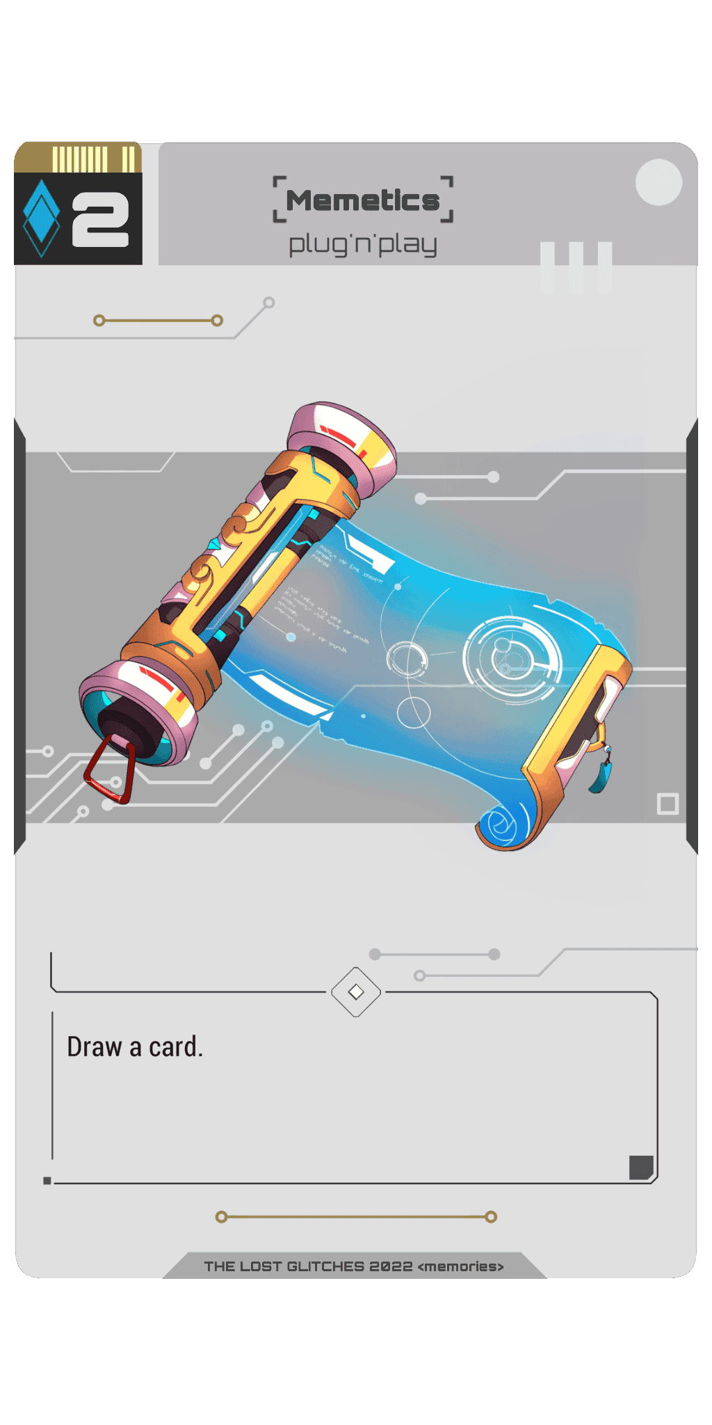 Lost Glitches is a mixture of trading card game (TCG) and role-playing game (RPG). Players choose their syndicate, assemble their deck and gain experience to improve their character's skills and equipment, and eventually conquer the virtual world of Deep Sky.