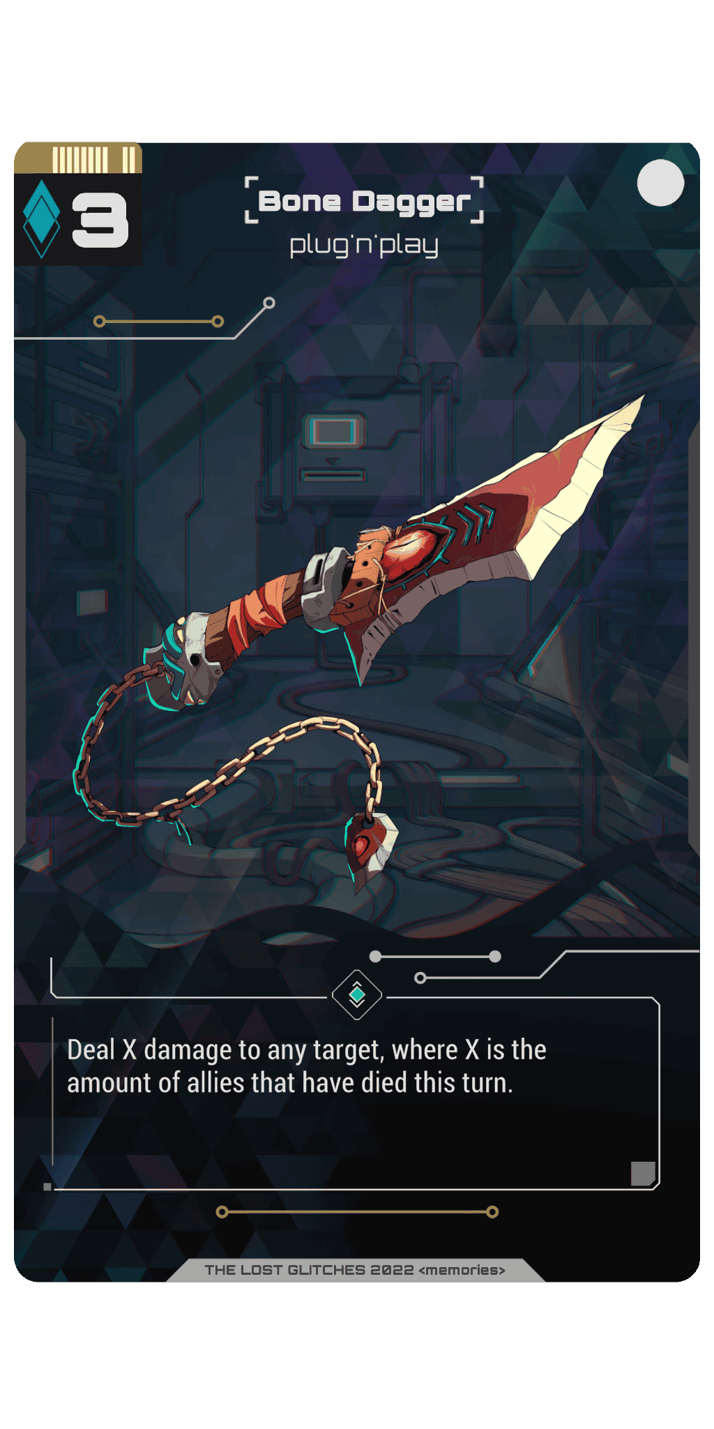 Lost Glitches is a mixture of trading card game (TCG) and role-playing game (RPG). Players choose their syndicate, assemble their deck and gain experience to improve their character's skills and equipment, and eventually conquer the virtual world of Deep Sky.