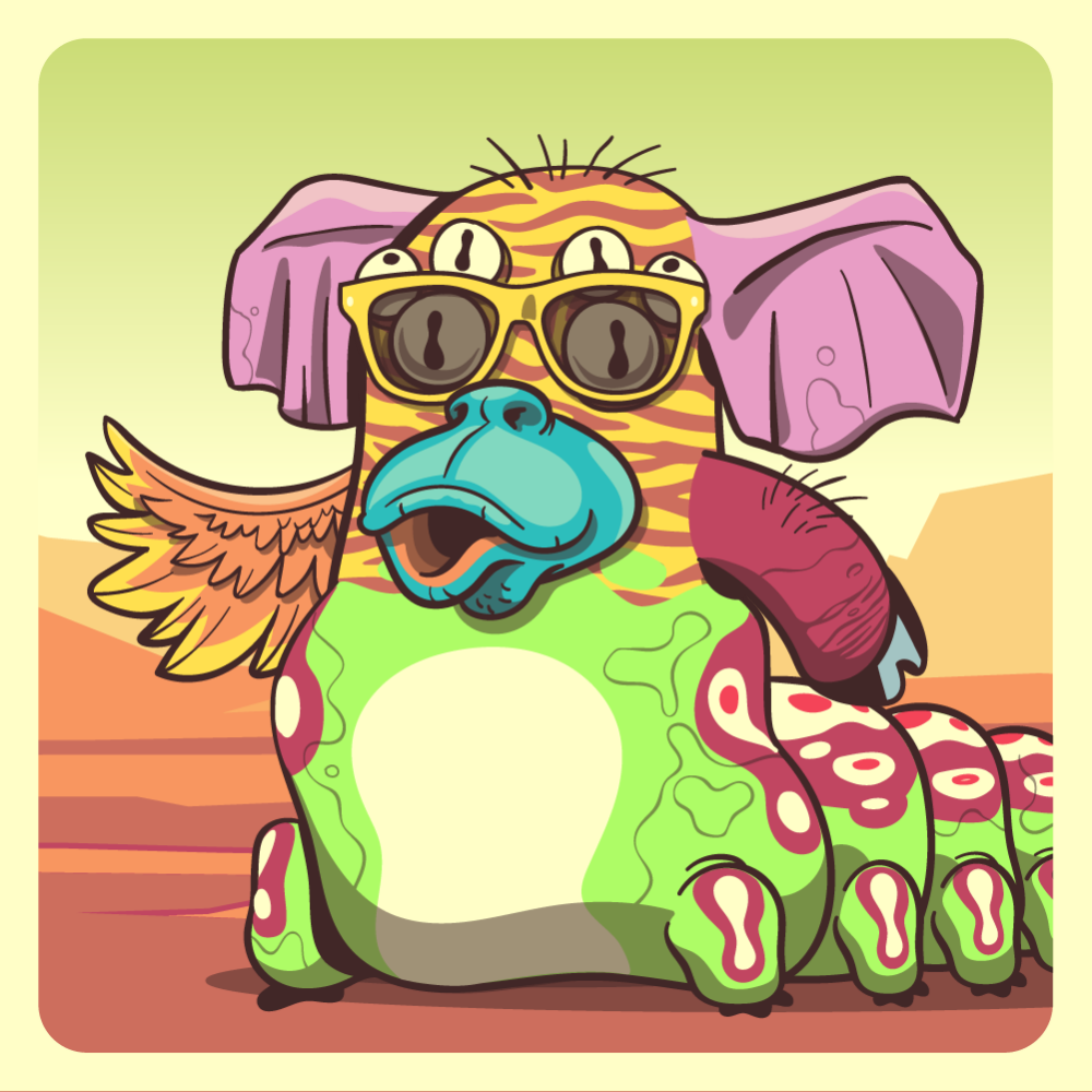 This mutant might have been a Tiger. It features spidey glasses eyes, blue ape snout, pink elephant ears, red pig arm, orange chicken wing for arms and fluo caterpillar abdomen. Mutants with caterpillar abdomen are very resilient. They can knit silk with their tail!