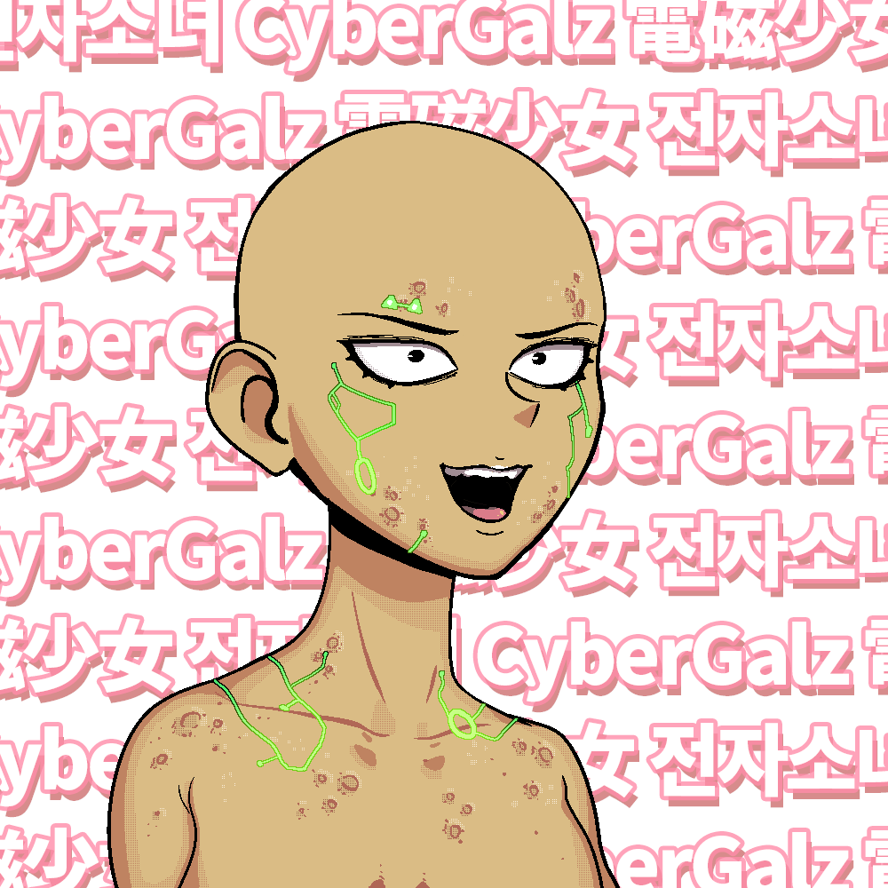 Cyber Galz is a collection of 9,999 uniquely generated female humanoids featuring customisation by changing Partz, the changeable attributes.