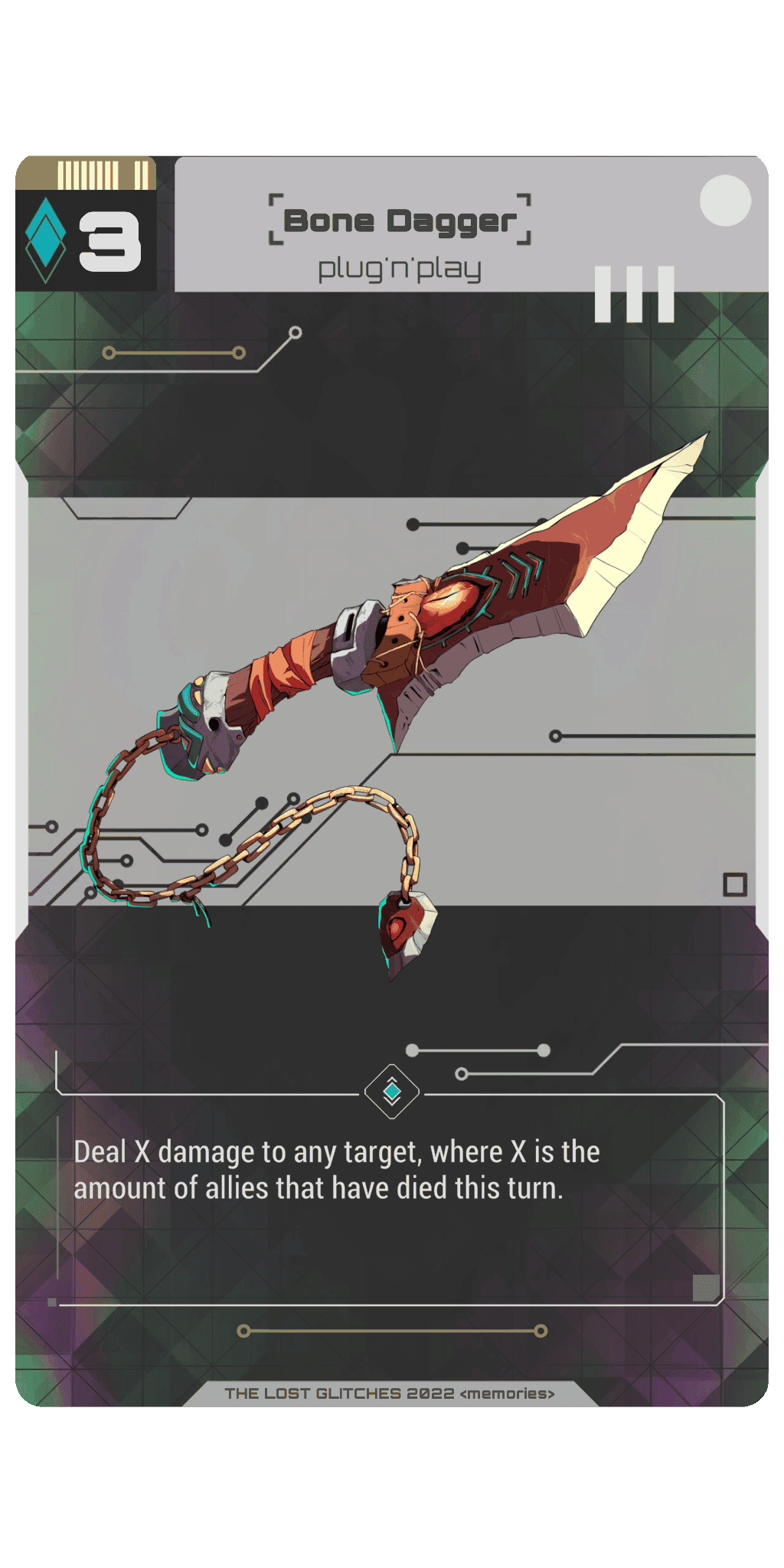 Lost Glitches is a mixture of trading card game (TCG) and role-playing game (RPG). Players choose their syndicate, assemble their deck and gain experience to improve their character's skills and equipment, and eventually conquer the virtual world of Deep Sky.