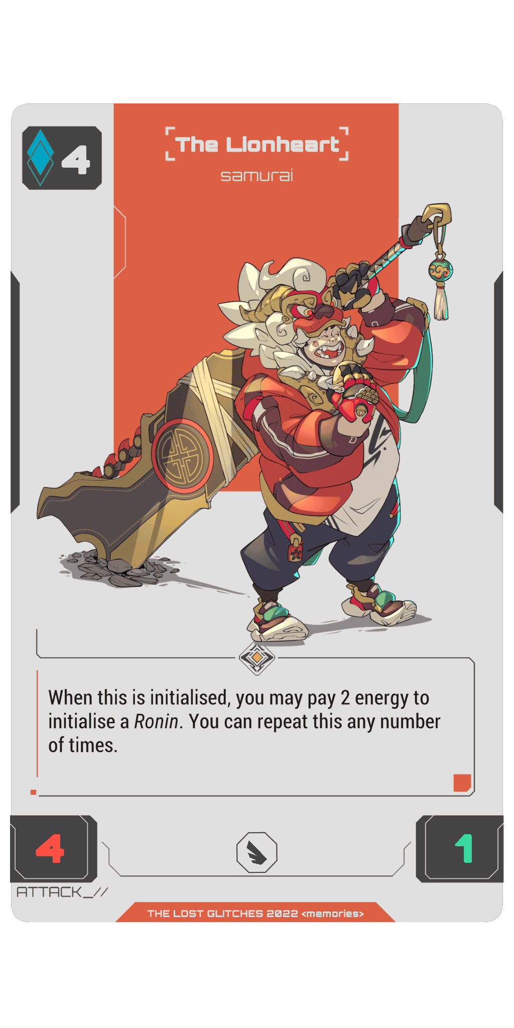 When The Lionheart is initialised, you may pay 2 energy to initialise a Ronin. You can repeat this any number of times.