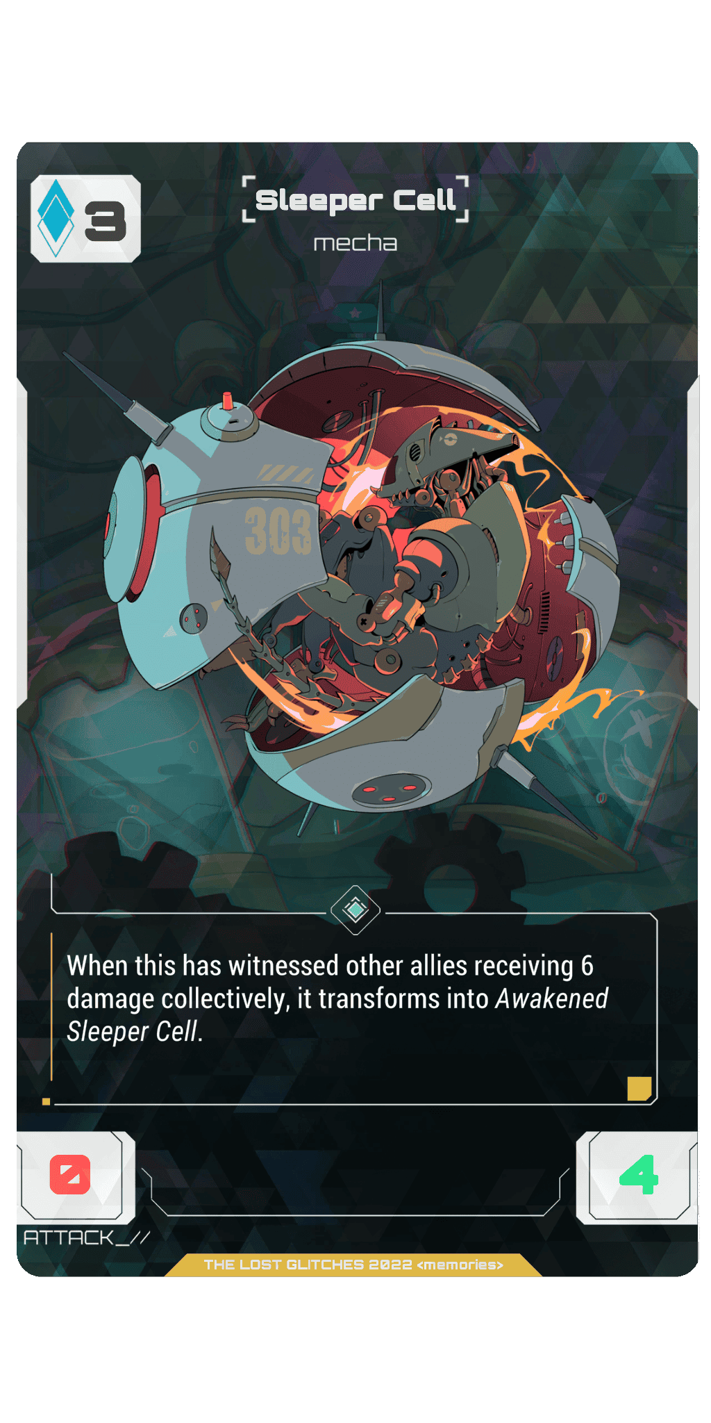 When Sleeper Cell has witnessed allies receiving 6 damage collectively, Sleeper Cell transforms into Awakened Sleeper Cell.