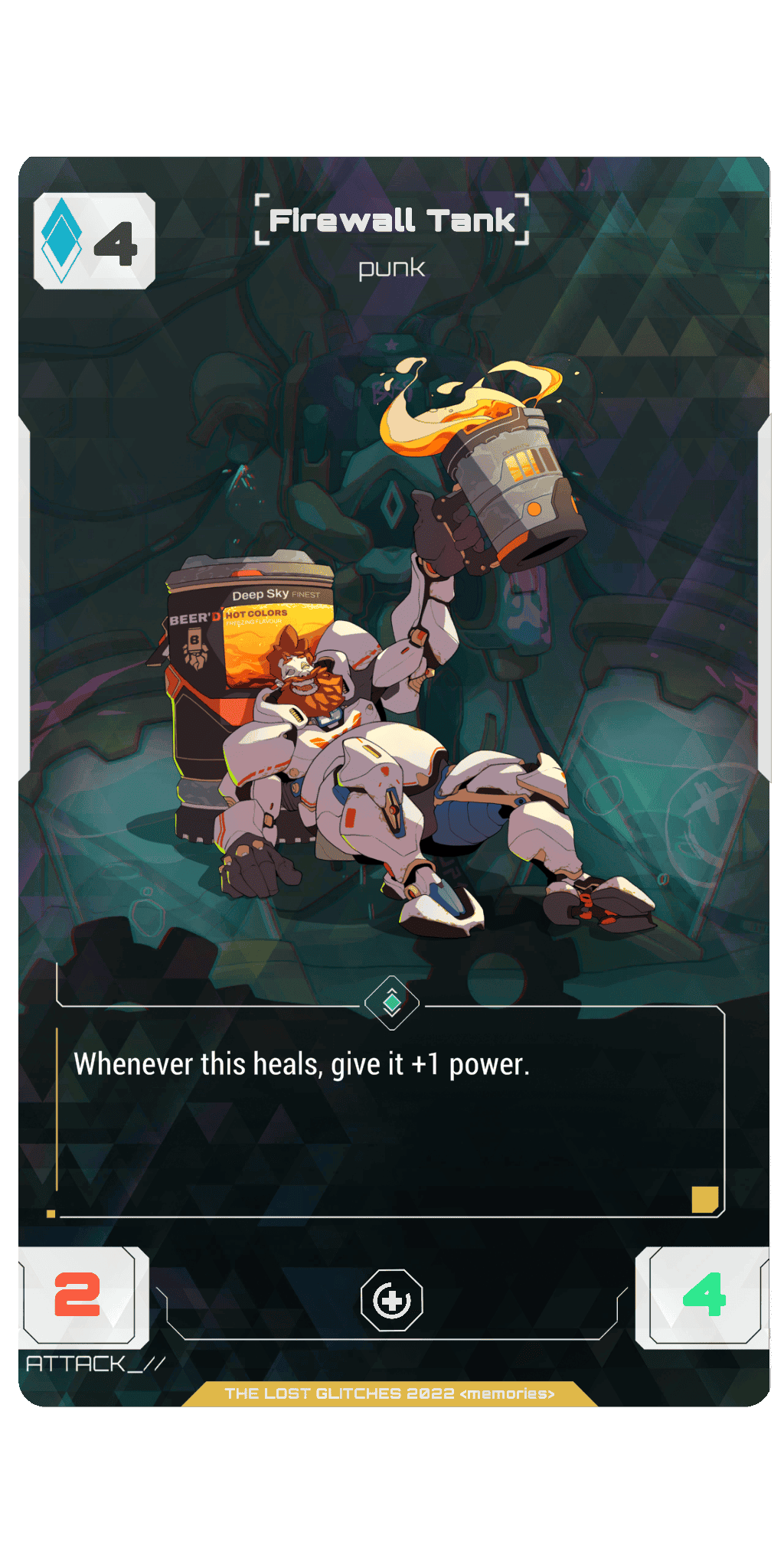 Whenever Firewall Tank heals, give Firewall Tank +2/+0.