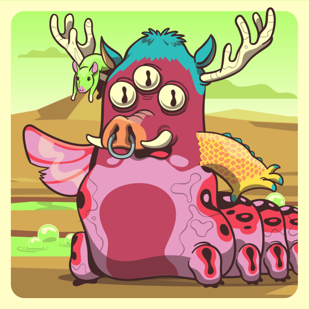 This mutant might have been a Dolphin. It features white triplet eyes, orange boar snout, zen rat-trap blue moose antlers, uranium crocodile arm, pink fish fin for arms and pink caterpillar abdomen. Mutants with caterpillar abdomen are very resilient. They can knit silk with their tail!