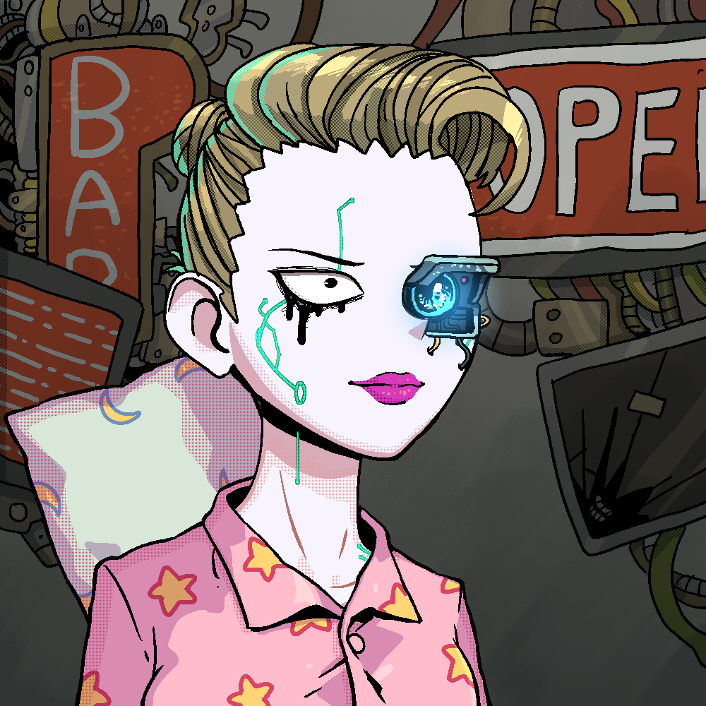 Cyber Galz is a collection of 9,999 uniquely generated female humanoids featuring customisation by changing Partz, the changeable attributes.
