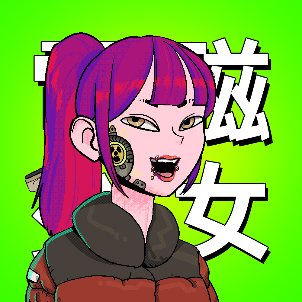 Cyber Galz is a collection of 9,999 uniquely generated female humanoids featuring customisation by changing Partz, the changeable attributes.