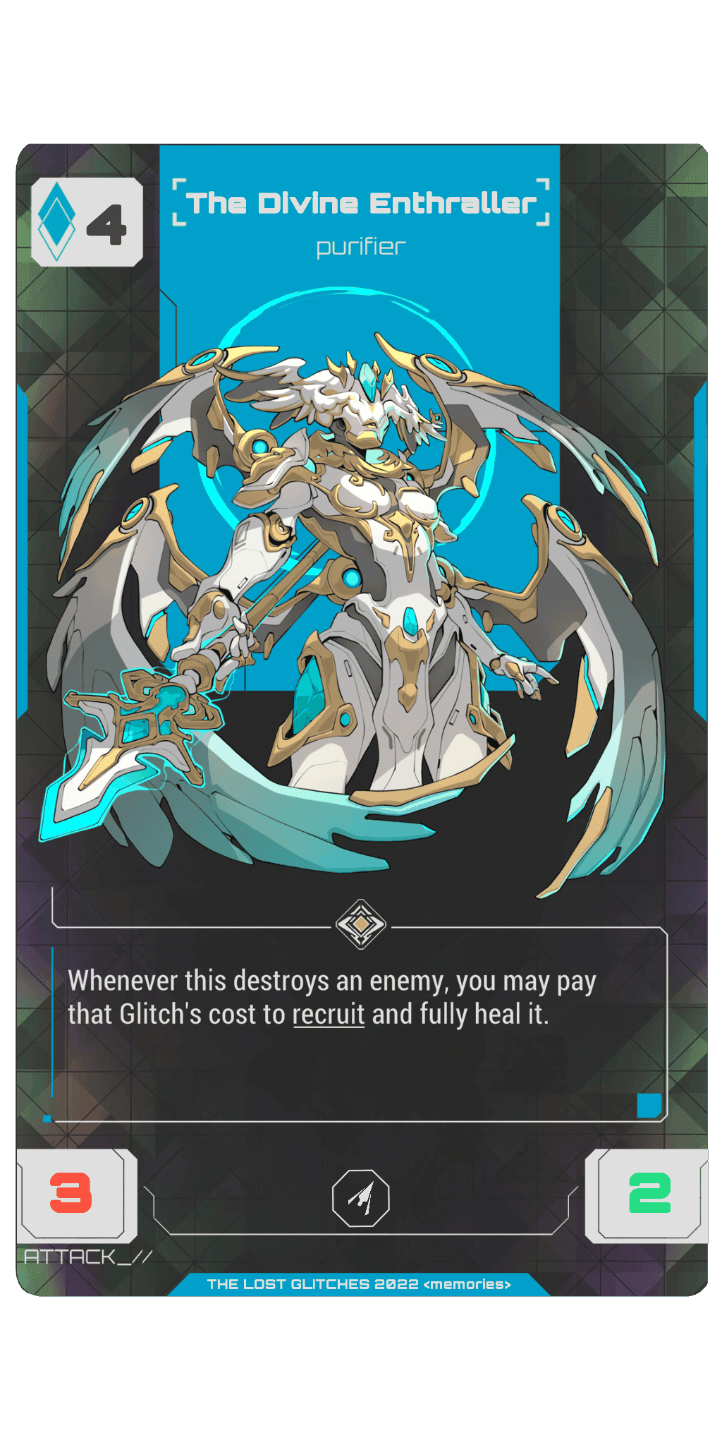 Whenever The Divine Enthraller kills an enemy, you may pay that Glitch's cost to recruit and fully heal them.