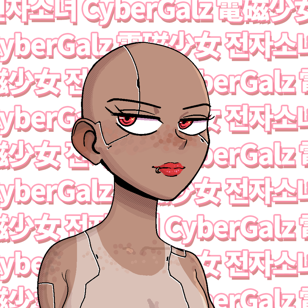 Cyber Galz is a collection of 9,999 uniquely generated female humanoids featuring customisation by changing Partz, the changeable attributes.